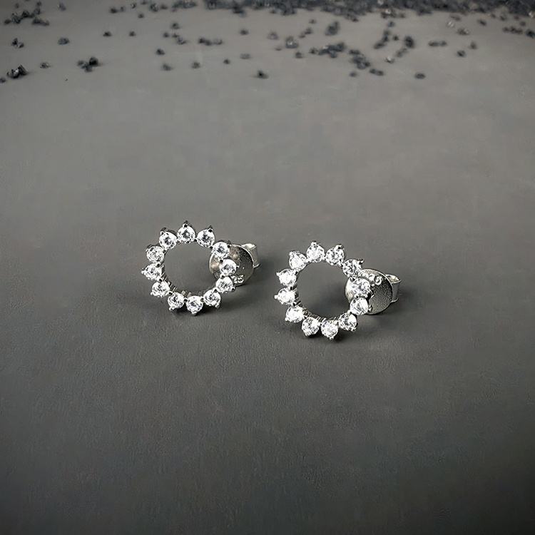 Promotion Plaqué Rhodium Dent De Scie Flocon De Neige Déclarations 925 En Argent Sterling Cercle Moissanite Boucles D'oreilles Pour Les Femmes Unisexe