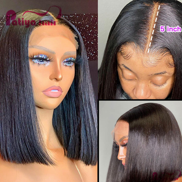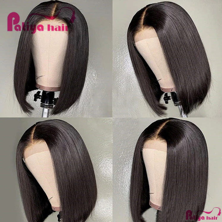 Promotion Perruques Cheveux Humains Naturels Courts Lisses Prix Bas 8 10 12 14 16 18 20 22 pouces avec Closure 4*4 et Perruques Brésiliennes 5x5