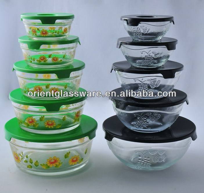 Nom du produit:Promotion 5 pcs bol en verre avec couvercle en plastique impression personnalisée