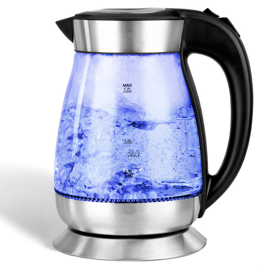 Bouilloire électrique sans fil avec lumière LED, l, pour le thé et le café, couverture automatique, Protection contre la combustion de l'eau en verre