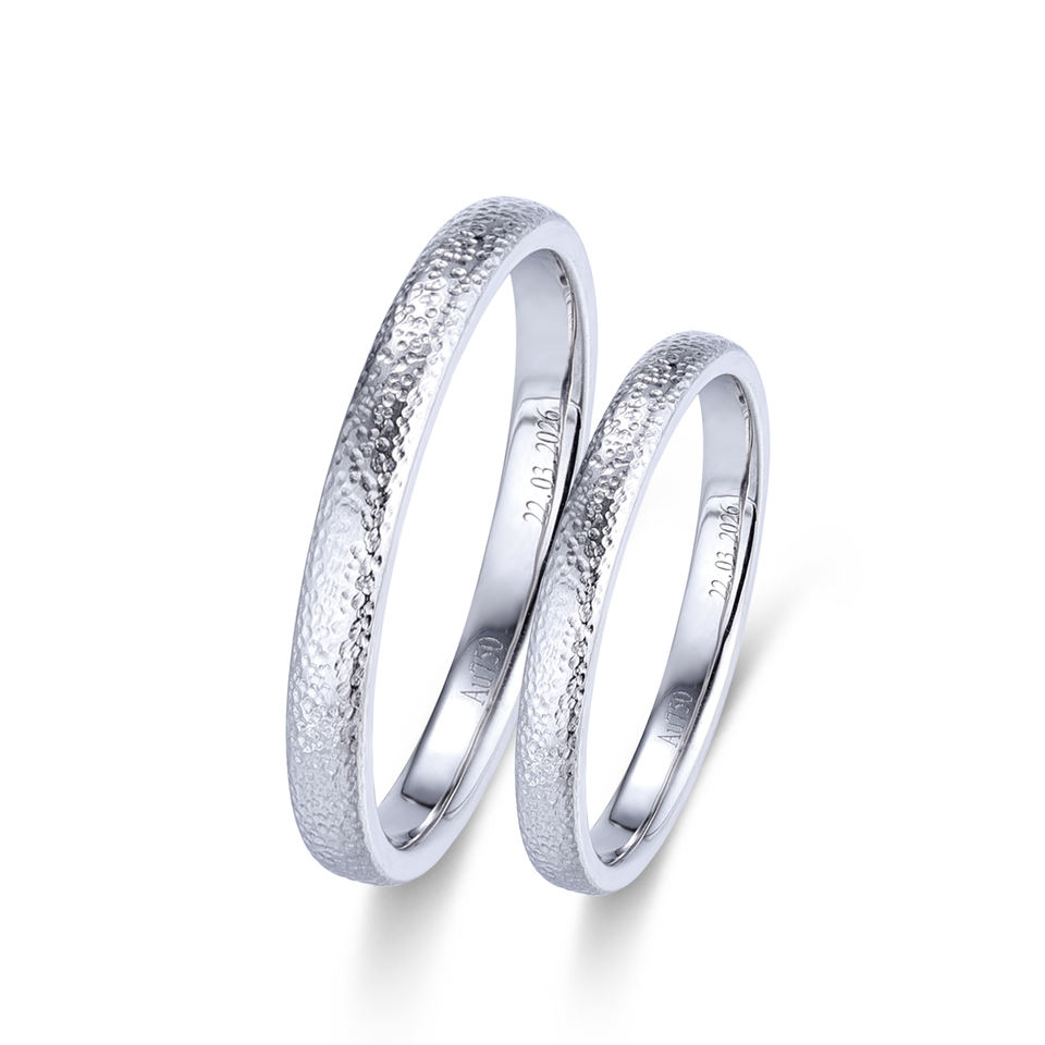 Bague de mariage promotionnelle en or blanc massif 18 carats, finition martelée, design personnalisé de qualité supérieure, simple et classique pour fêtes et mariages