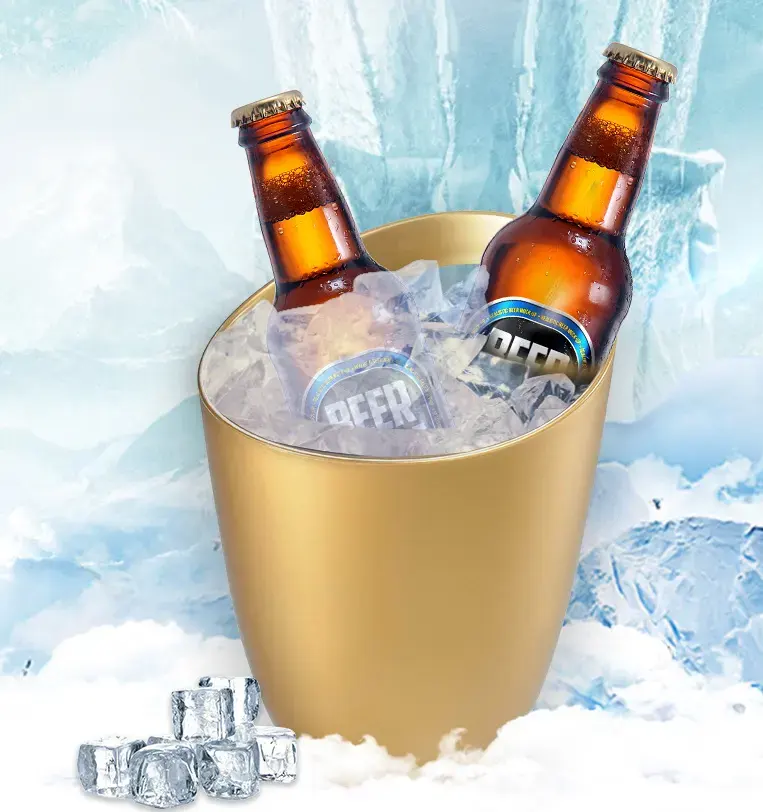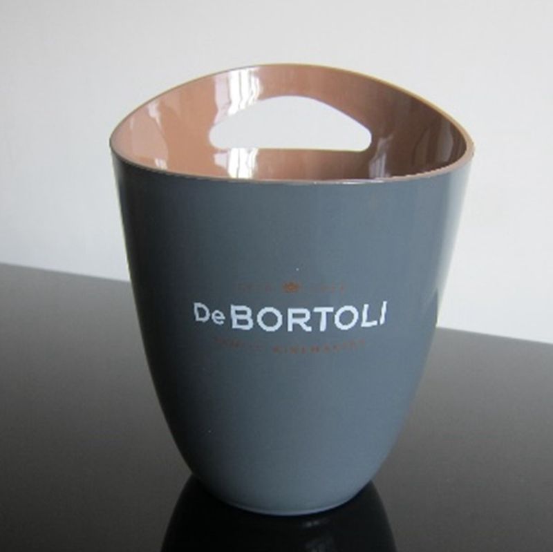 Seau à glace en plastique promotionnel de 3 litres dans des bacs à boissons noirs et blancs pour Desperados et Jenlain pour les champagnes du groupe Castel