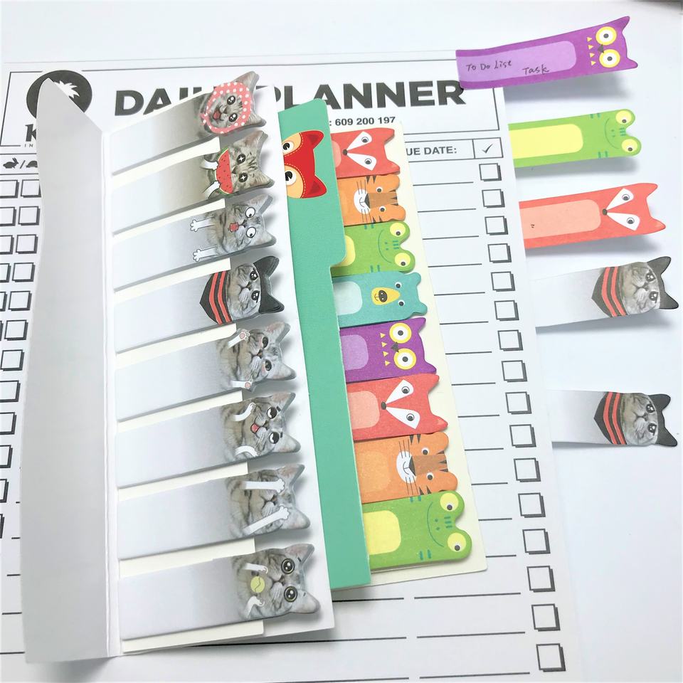 Lot promotionnel économique de mini marque-pages et notes autocollantes en papier pour enfants, motifs kawaii et dessins animés mignons, couleurs vives, notes de rappel