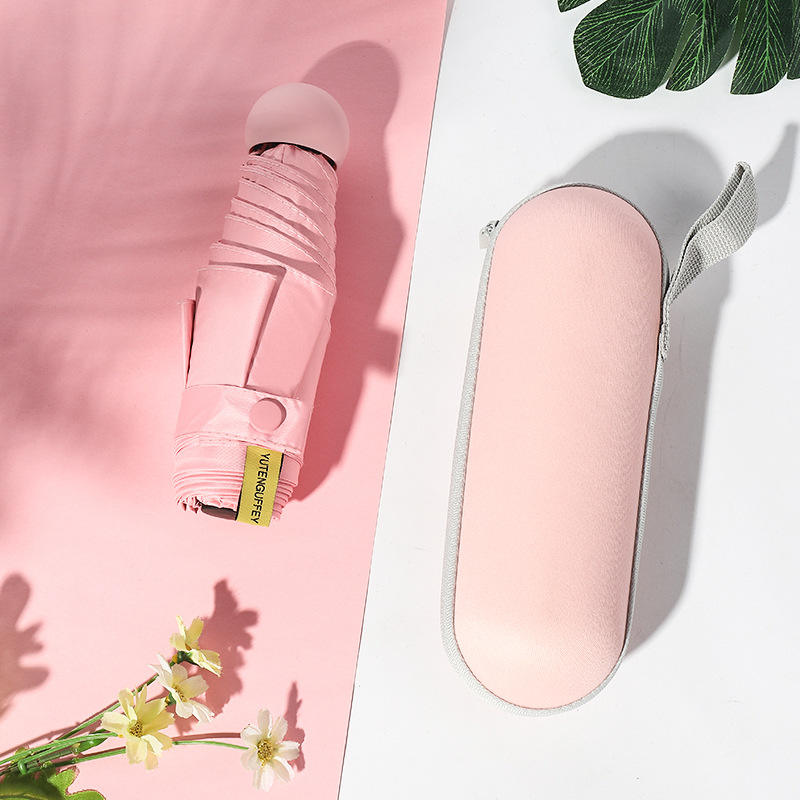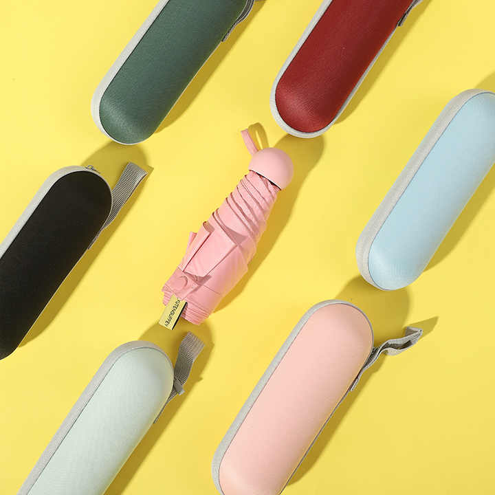 Parapluie pliable à capsule promotionnelle Parasol Meilleur voyage portable UV Petit 5 Mini parapluie pliable avec logo personnalisé avec étui