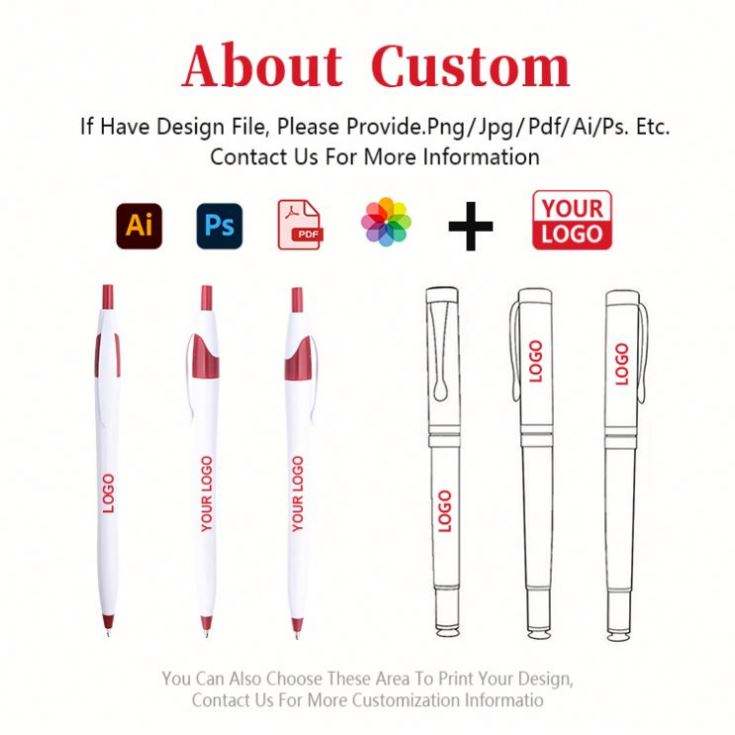 Stylo bille promotionnel à prix compétitif, personnalisable avec logo, en plastique, pour fournitures de bureau