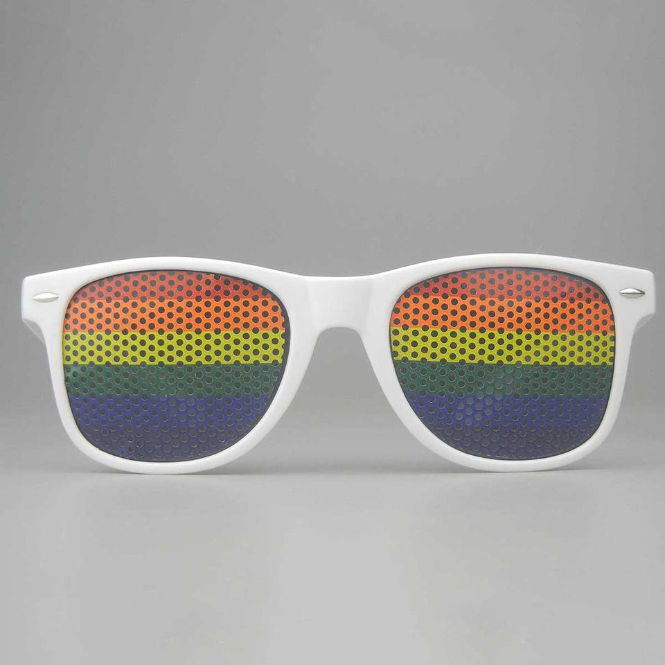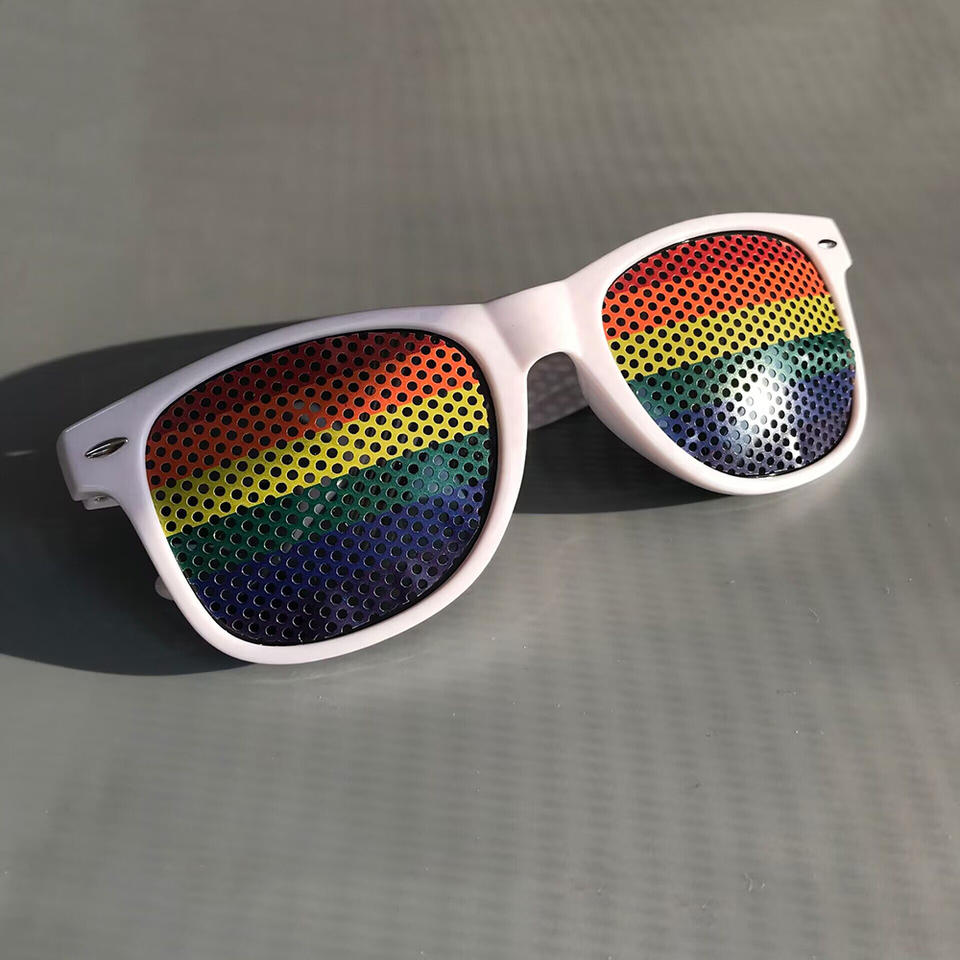 Lunettes de soleil à trou d'épingle personnalisées avec logo, monture rouge/violet/bleu, protection UV400, couleurs bonbon OEM, unisexe, pour adultes, promotions de fête