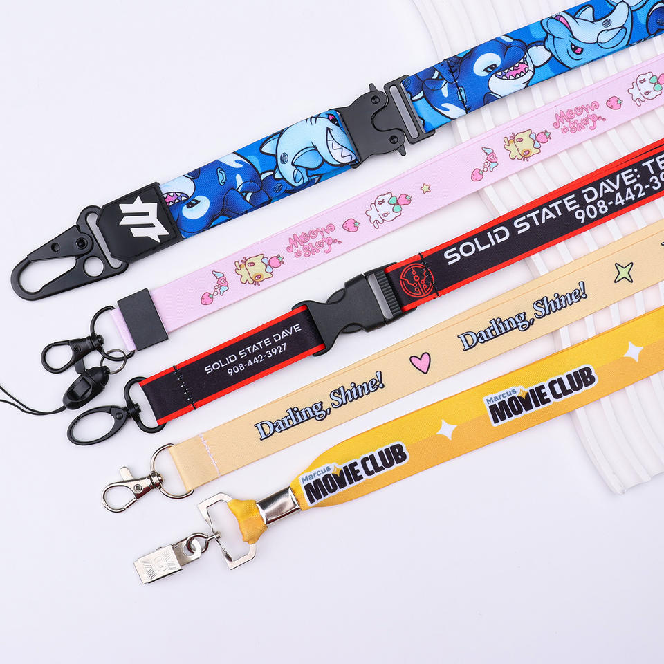 Lanière de téléphone promotionnelle personnalisée avec logo imprimé en polyester, lanière recyclable en sangle REPT, porte-badge d'identification, sangle de cou