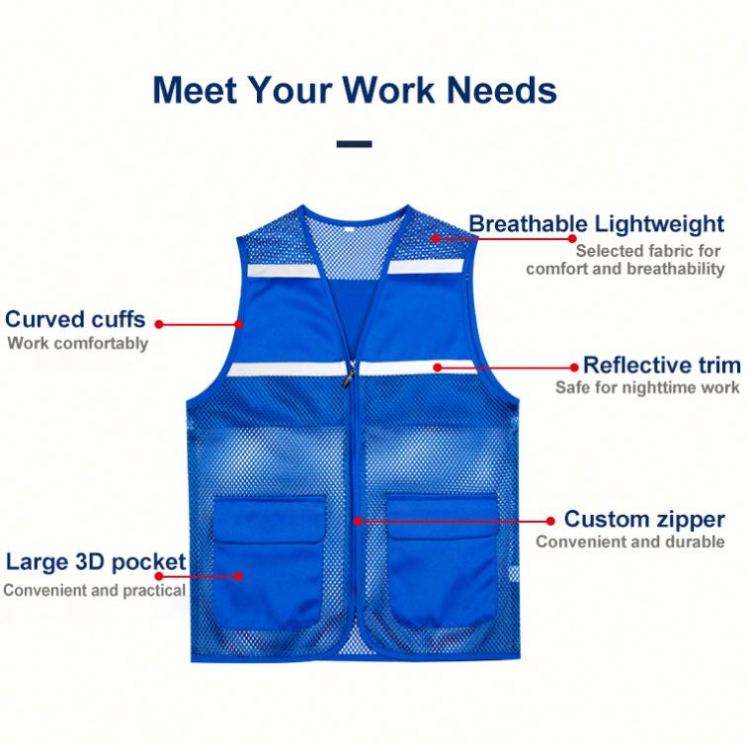 Gilet réfléchissant personnalisé promotionnel avec logo pour les travaux de construction et d'ingénierie, vêtements de travail multi-poches avec fermeture éclair, gilet de sécurité au travail