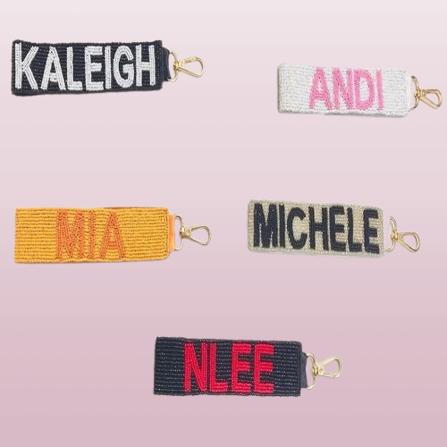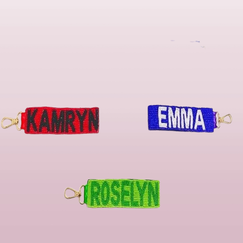 Porte-clés personnalisés faits à la main avec des noms, logos, initiales, thèmes de couleurs, motifs, personnalisables