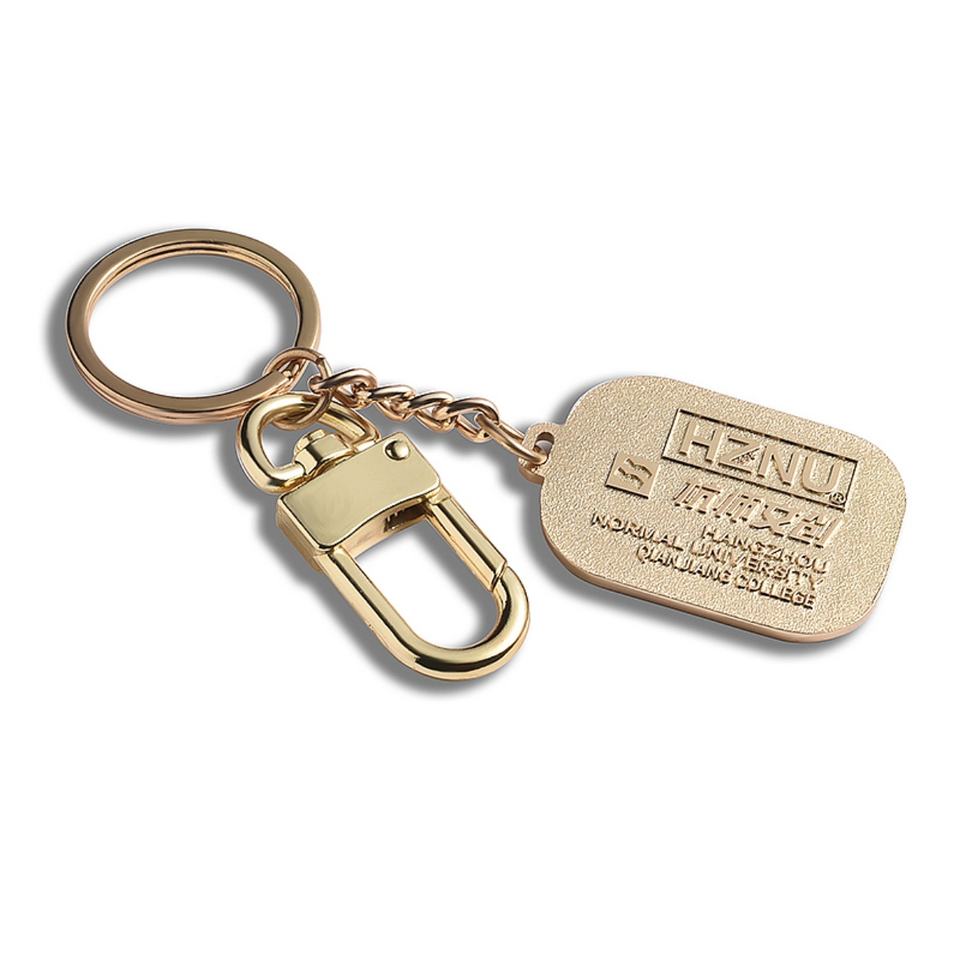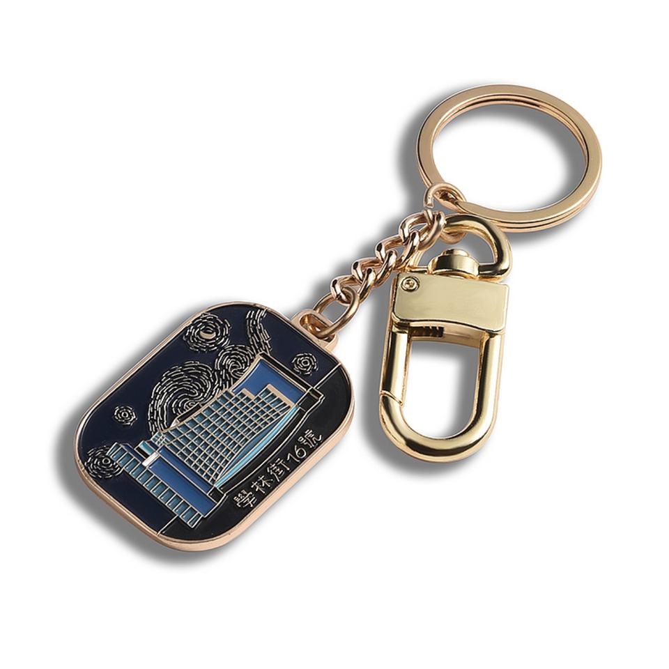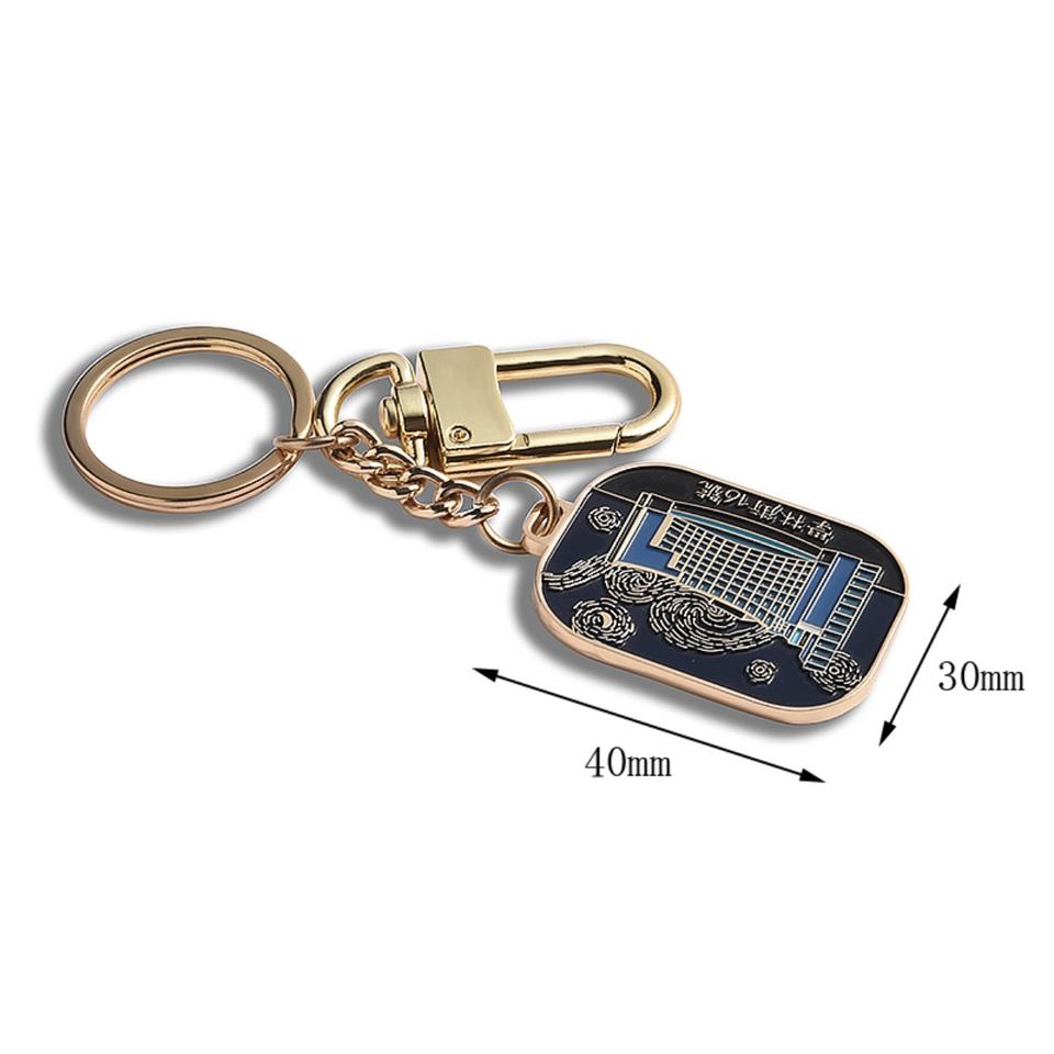Articles promotionnels, porte-clés souvenir en métal rectangulaire doré, émail doux