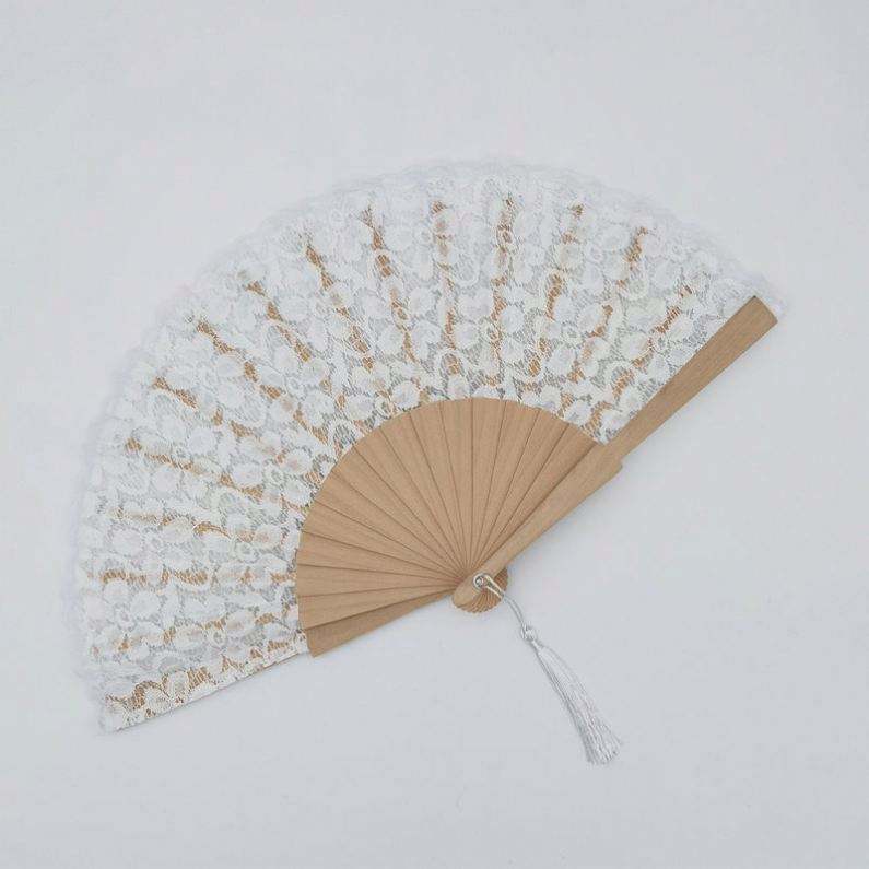 Éventails pliants décoratifs promotionnels à motifs pour la danse, en dentelle et soie, couleur unie, pour mariage, sculptures et figurines