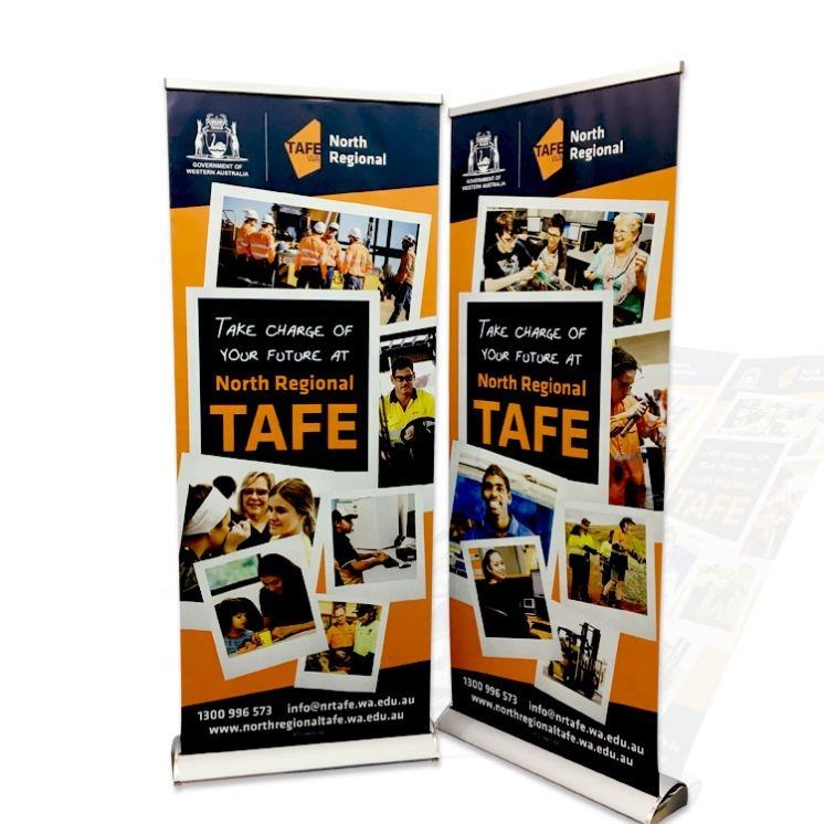 Prix promotionnels Custom Graphics Mall Stores Rouleaux d'affichage promotionnels Bannières en polyester Bannières debout