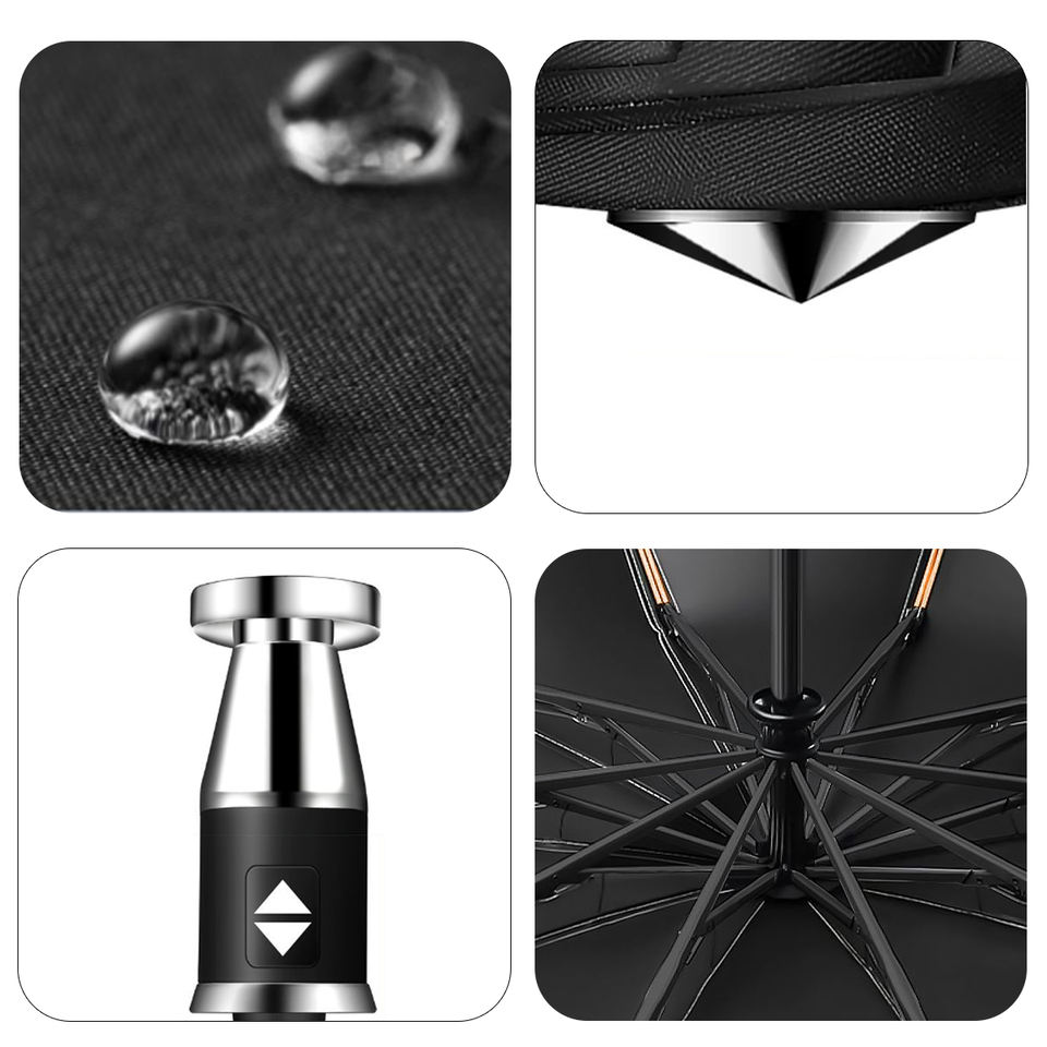 Parapluie pliant inversé promotionnel avec logo personnalisé, ouverture et fermeture automatiques, résistant au vent, structure robuste, idéal pour cadeau d'entreprise