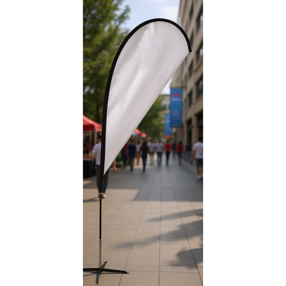 Drapeau publicitaire en forme de larme avec impression numérique, mât en aluminium, tissu en polyester, idéal pour les événements d'entreprise et les activités en extérieur