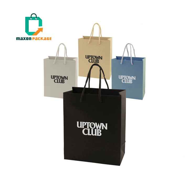 Emballage de luxe promotionnel blanc Art poignée Logo personnalisé sac à provisions imprimé personnalisé