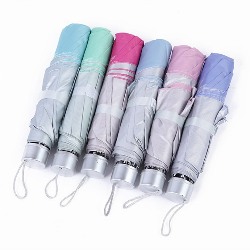 Nom:Parapluie pliant argenté avec logo promotionnel et protection UV