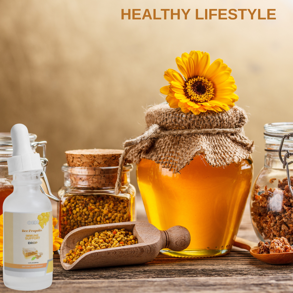 Ingrédient principal:Extrait de propolis d'abeille à 95 %