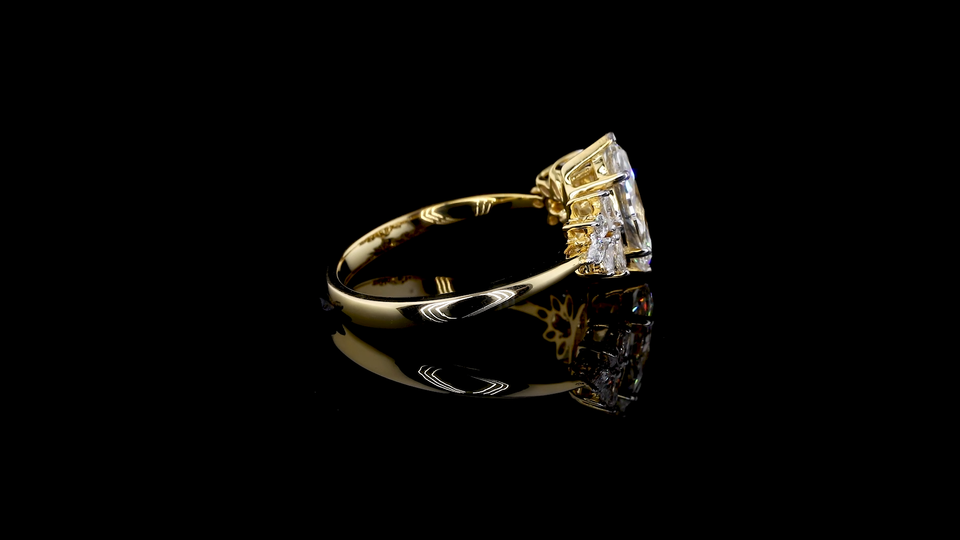 Bague de fiançailles vintage avec diamant de laboratoire taille marquise certifié IGI, plaqué rhodium, motif floral en grappe, bijoux de mariage