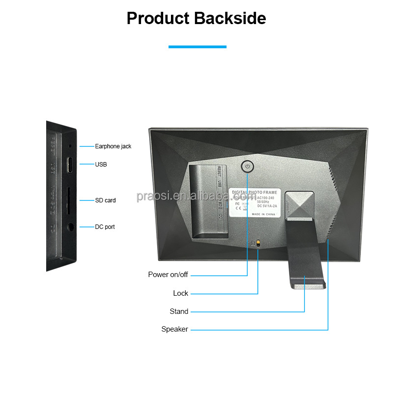 Cadre photo numérique tactile 7 pouces LED Wifi 20 pièces/ctn, taille du carton: 60*31*43cm, poids net 10kg, poids brut 10.5kg, poids volumique 12kg.