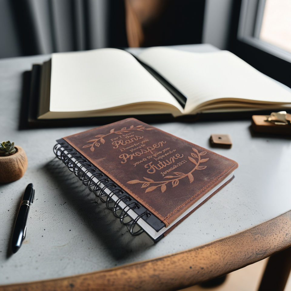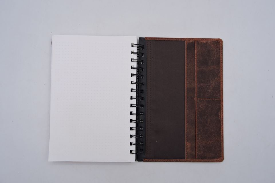 Prosper Future cahier à reliure à spirale Logo en relief agenda en cuir marron planificateur d'écriture personnalisable avec fentes pour cartes à l'intérieur