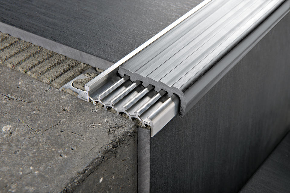 Marches en aluminium d'acier inoxydable de Prostair protégeant les profils techniques de nez d'escalier