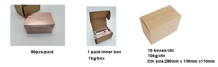 200 pièces par boîte, taille de la boîte: 210mm x 90mm x 55mm, 1.2kg par boîte
