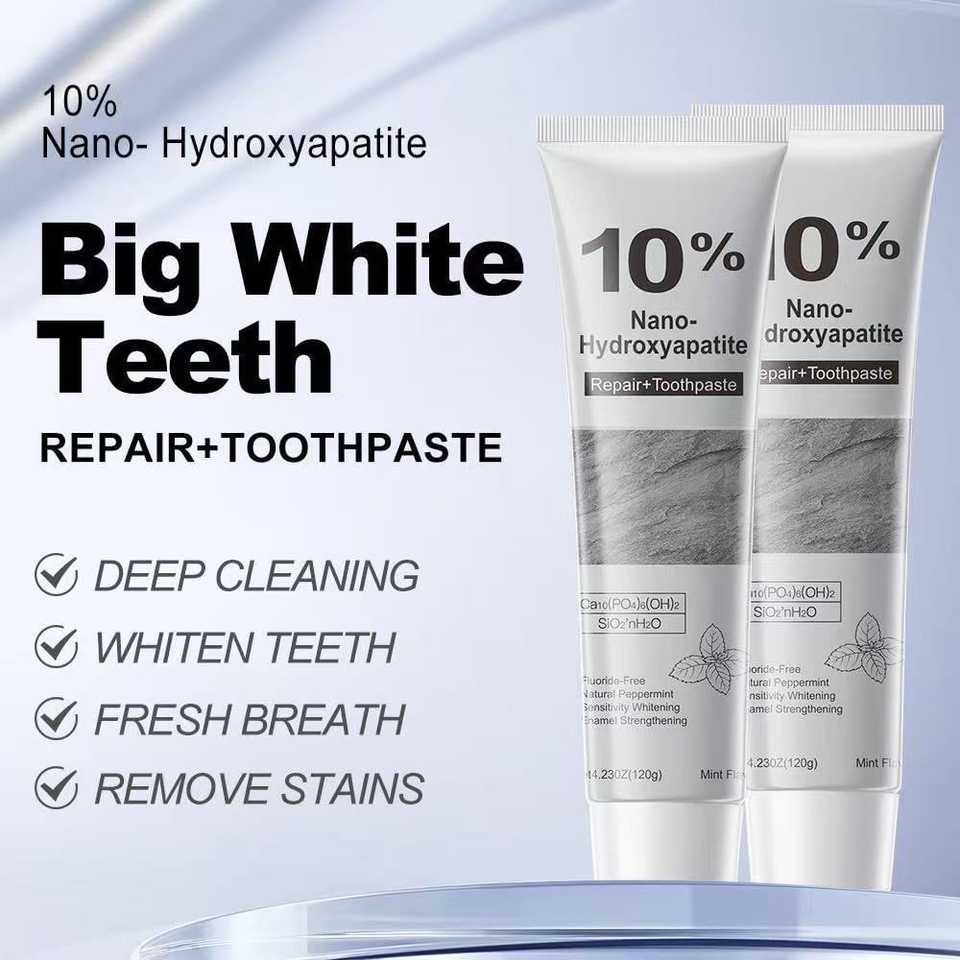 Dentifrice sans fluorure à l'hydroxyapatite nano pour dents sensibles, réparation de l'émail, blanchiment avec 10% nHAP, soin quotidien rafraîchissant 120g