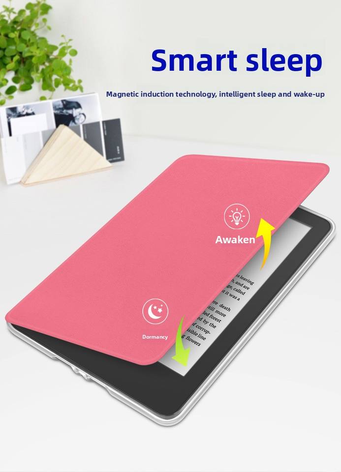 Étui de protection pour Kindle 2024 Paperwhite6543, coque arrière transparente en acrylique, housse portable en PU durable avec fonction veille/réveil automatique