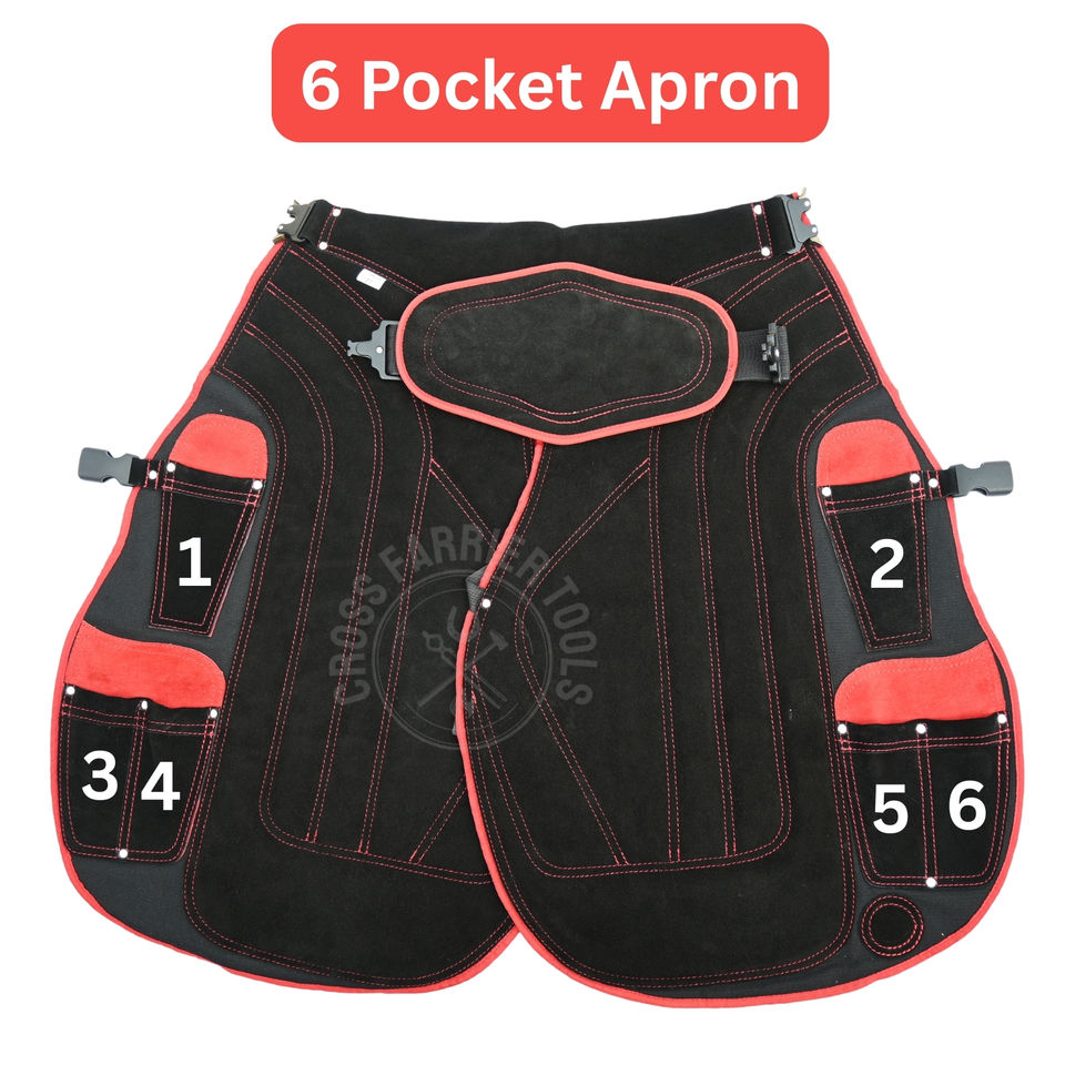 Tablier de protection pour fermeur, style long, en tissu maillé respirant, avec porte-couteaux, aimant pour clous, ceinture réglable et boucle en acier inoxydable