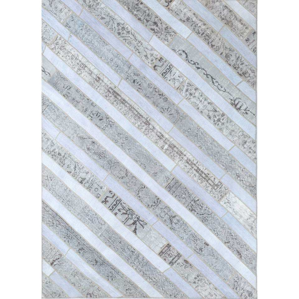 Tapis en laine noués à la main Provenance, motif abstrait rayé gris et noir, rectangulaire, pour la maison, le couloir, le salon - Pae-3763