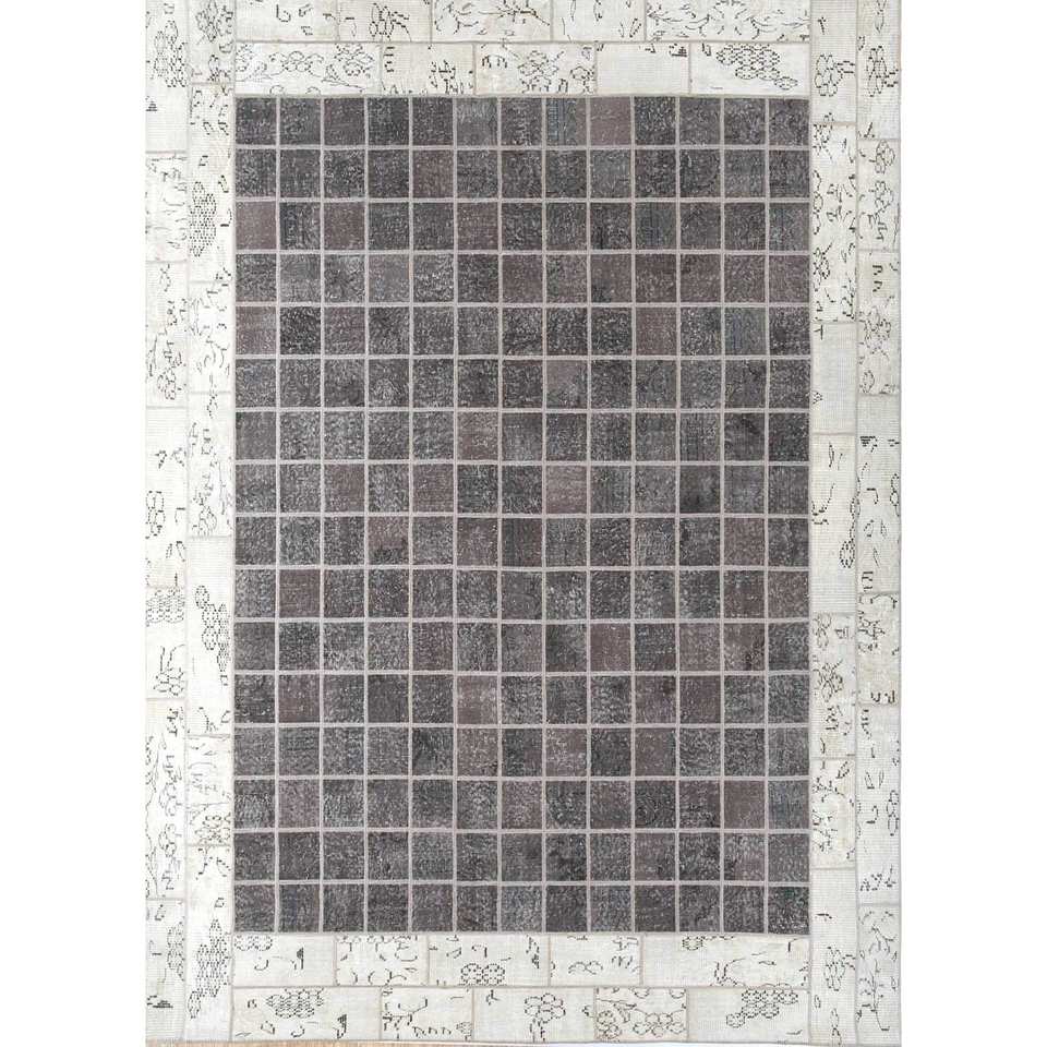 Tapis en laine noué à la main Provenance Pae-3386, motif patchwork gris et noir, pour entrée, chambre, couloir, rectangulaire, taille 9x12 pouces