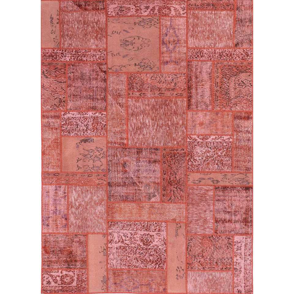 Tapis en laine noués à la main Provenance, rouge-orange, motif abstrait patchwork, rectangulaire 9x12, pour entrée et couloir, Pae-3398