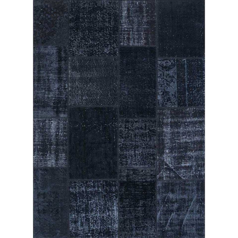 Tapis en laine noués à la main grande surface Provenance Pae-3915, design patchwork gris et noir pour la décoration de la maison, du salon et du couloir