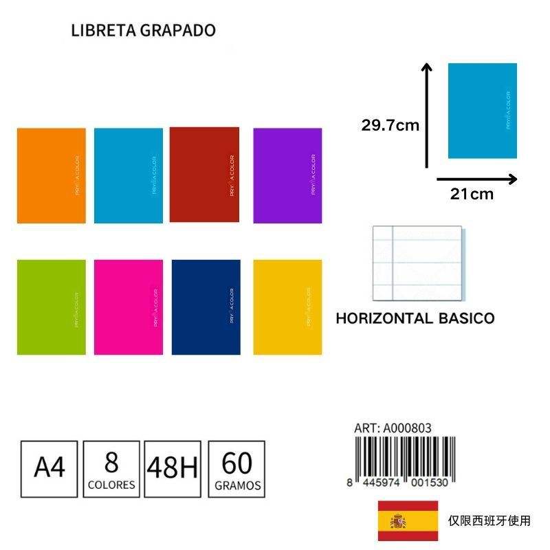 Pryma Basic A4 Cahier agrafé paysage 48 feuilles/60gsm pour notes et prise de notes