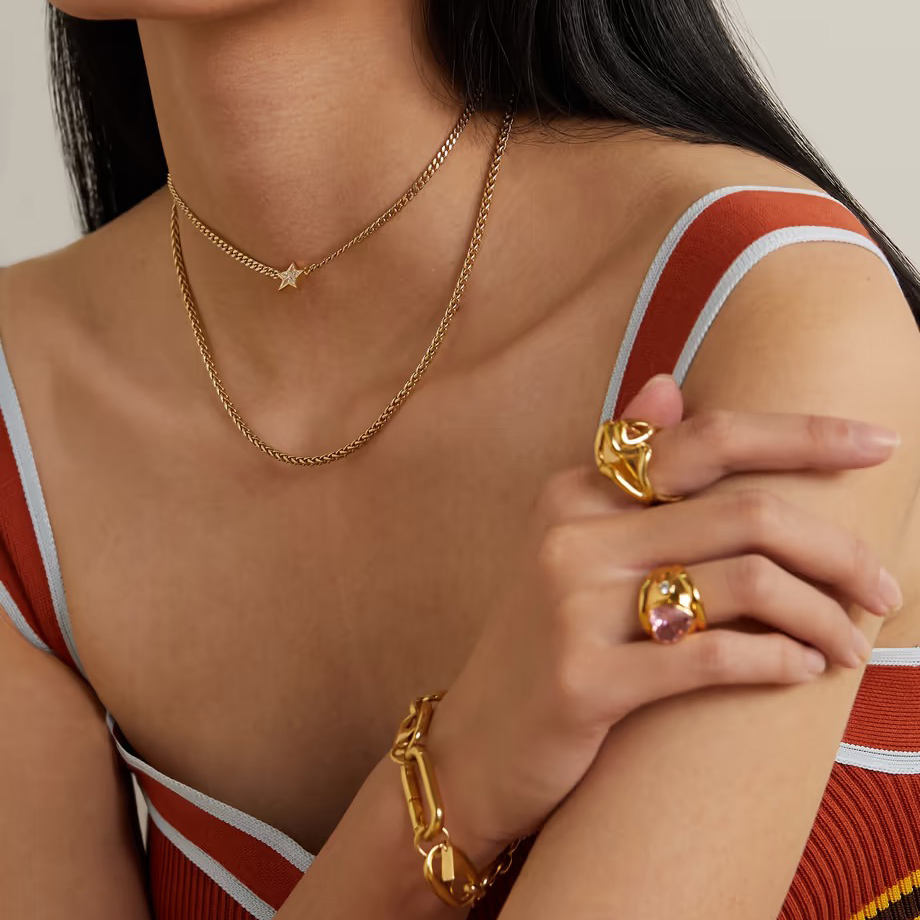 Psj personnalisé 14 carats plaqué or argent Sterling Super Duper étoile étoile chaîne à maillons 925 pendentif collier cubain pour les femmes
