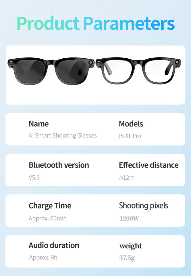 Lunettes intelligentes AI Ptarmigan avec caméra 1200W pixels, anti-vibration, double batterie, étanches IP67, permettant de prendre des photos et des vidéos en temps réel