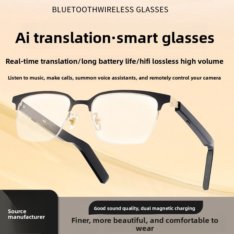 Lunettes intelligentes à écran tactile coulissant fin, avec traduction, IA, Bluetooth, monture en métal, multifonctionnelles, pour la conduite, appels, musique, LG-01-11