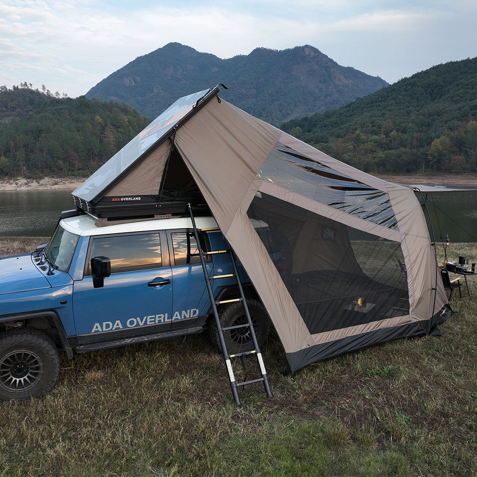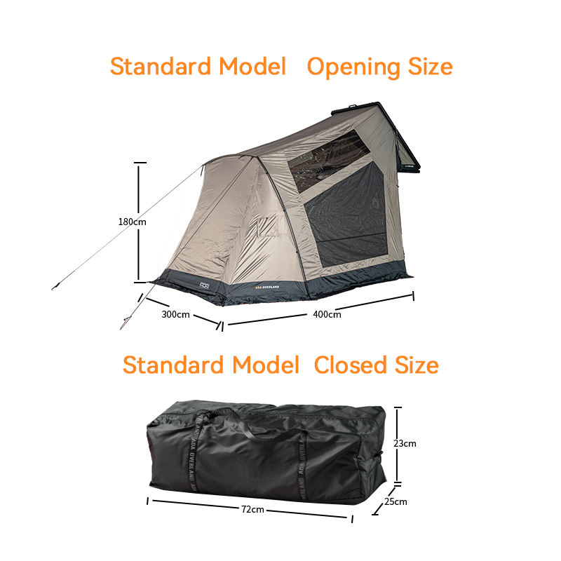 Tente de toit pliable la plus légère avec ouverture latérale, tissu imperméable de qualité supérieure avec revêtement PU et tiges de support en alliage d'aluminium
