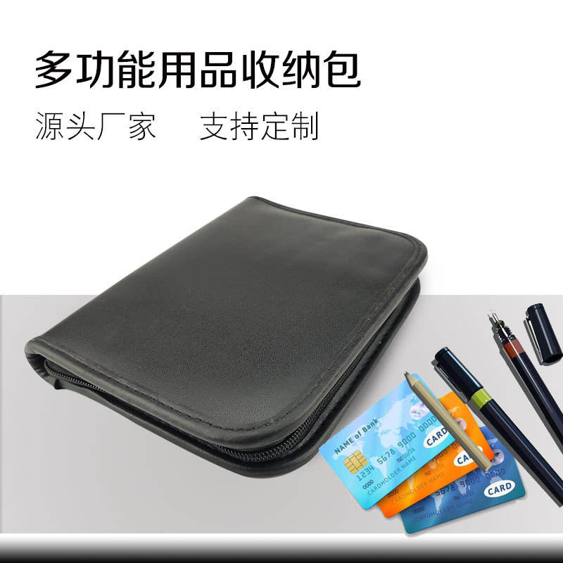 Porte-documents en PU, fermeture à glissière rectangulaire, couleur unie, organisateur de bureau, sac de rangement pour passeport et cartes, usage domestique