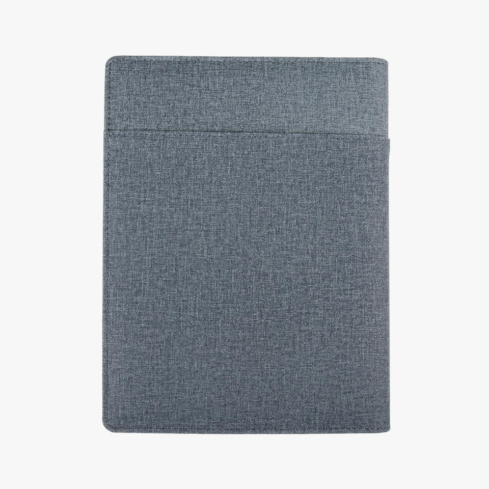 PU faux denim texture, matte black clamps.Matériel de couverture