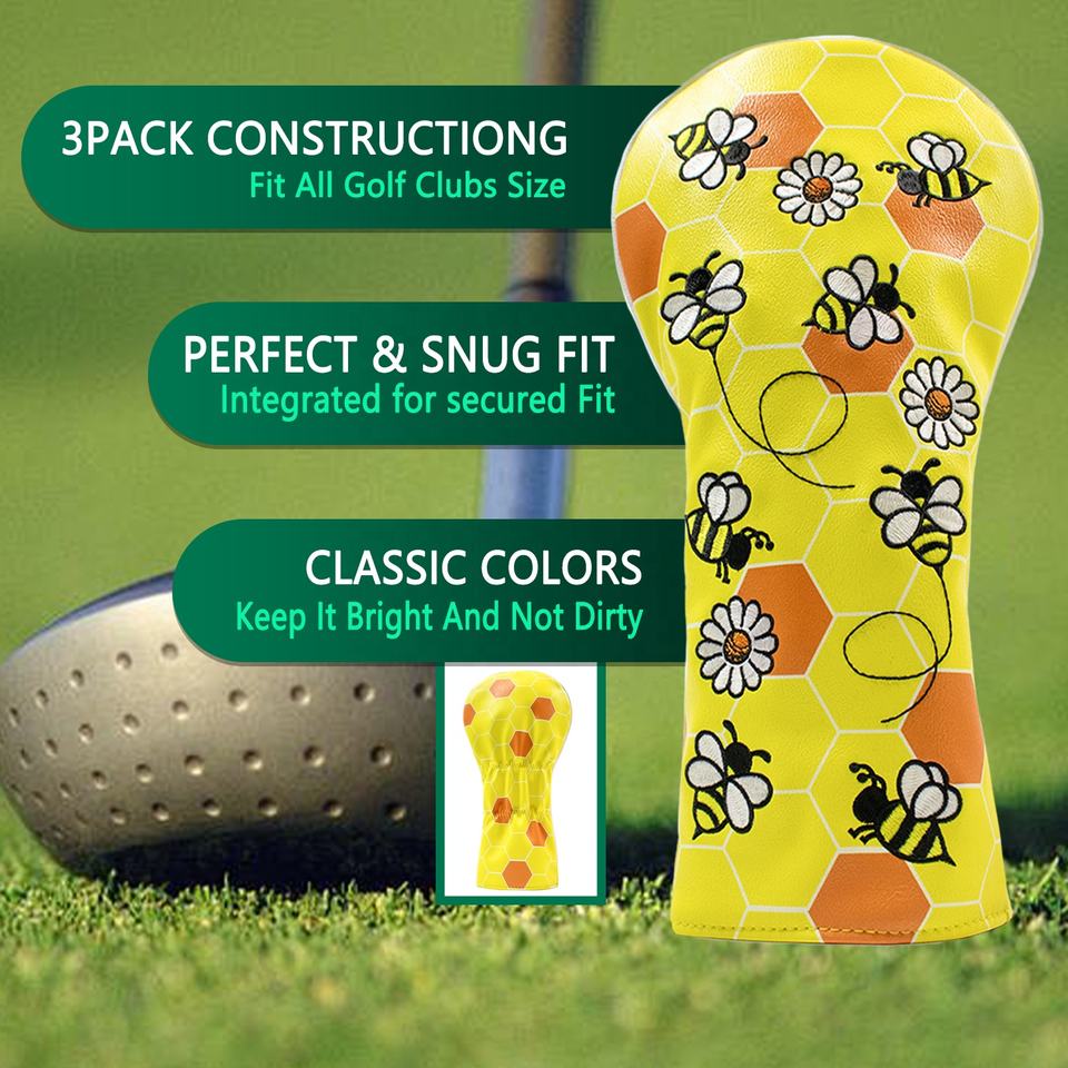 Ensemble de couvre-chef de club de golf à broderie personnalisée en cuir Pu pour couvre-chef de bois hybride de fairway de conducteur #1 #3 #5