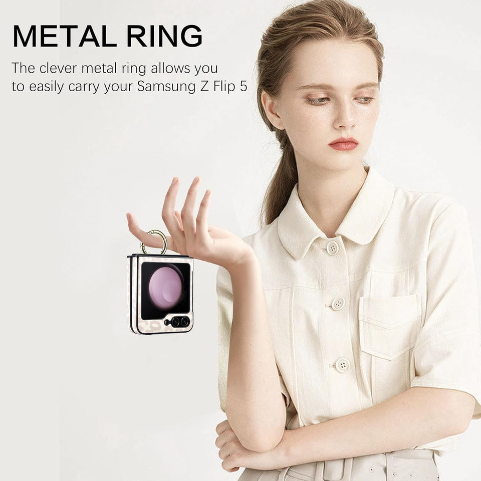 Coque arrière de téléphone en cuir pliable en cuir Pu avec porte-anneau en métal étui de téléphone portable antichoc pour Samsung Z Flip 6 7