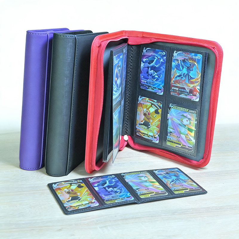 Album photo en cuir PU pliable avec fermeture éclair, 4 emplacements pour cartes, pour voyage, trajets quotidiens, poche de sac à dos, rangement de photos, organisation de documents