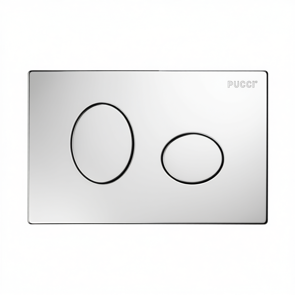Plaque de chasse d'eau encastrée Pucci Eco 2 boutons Ellipse chromée 29x21x4 cm