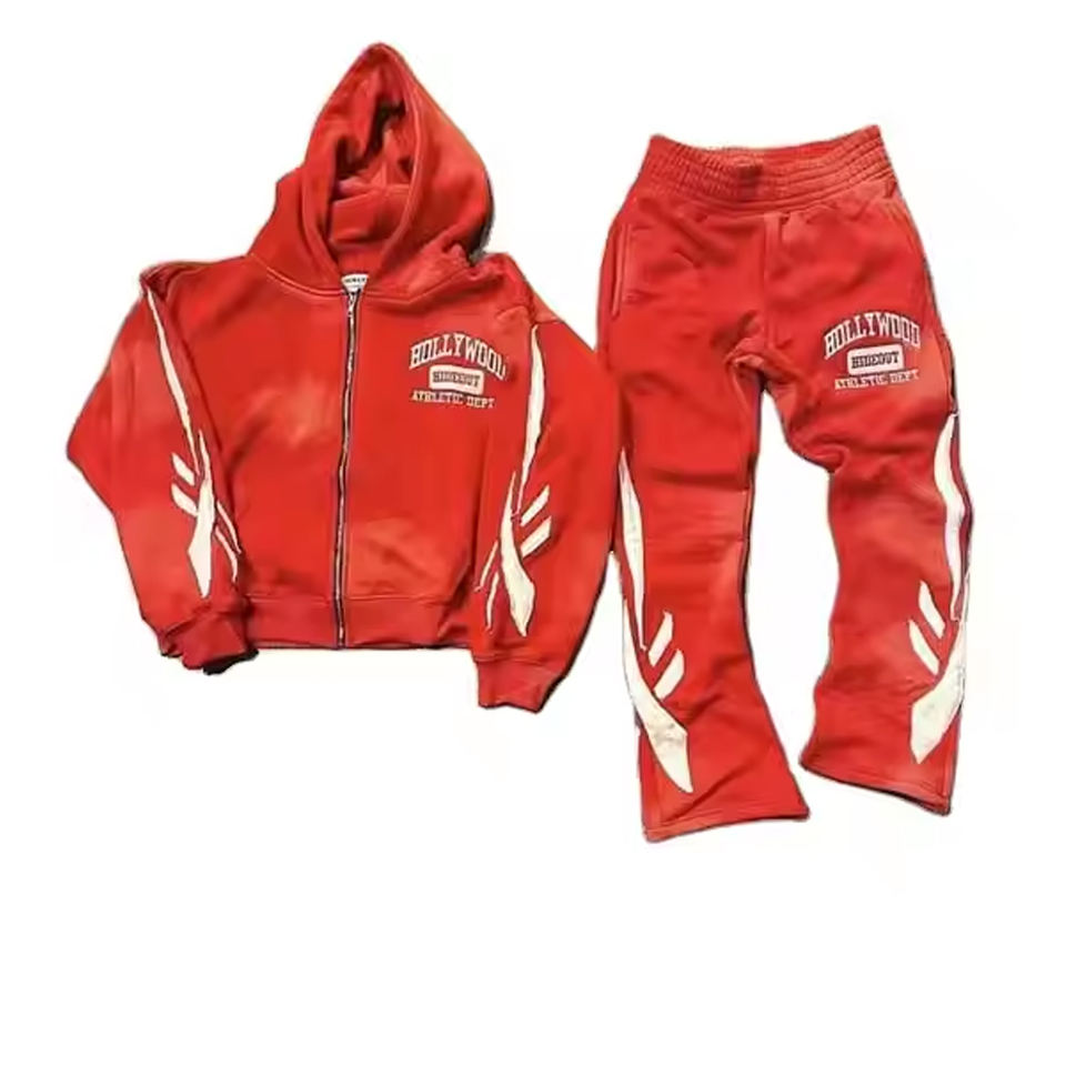 Survêtement évasé en molleton de coton lavé à l'acide imprimé bouffant avec pantalon de survêtement personnalisé meilleure vente produit en gros unisexe