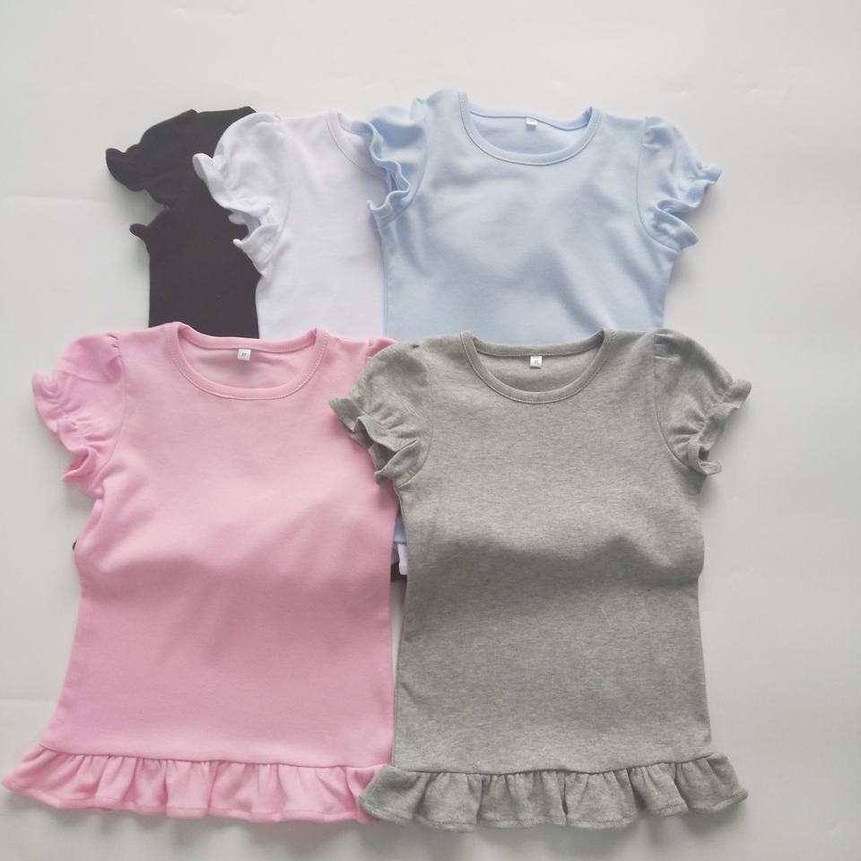 T-shirts vierges pour filles à manches bouffantes et bas en dentelle, T-shirts amusants pour sublimation