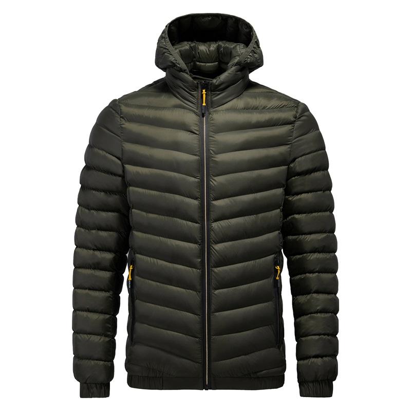Blouson matelassé pour homme, léger, chaud, en duvet de canard, logo personnalisé, nylon noir, à capuche, doudoune gonflée pour l'hiver, blousons matelassés pour homme