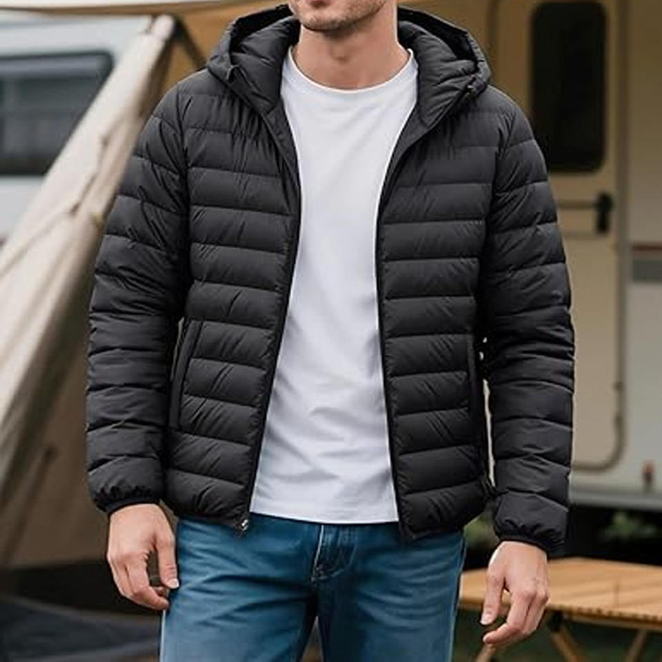 Doudoune pour homme Manteau à capuche surdimensionné avec rembourrage en duvet à bulles Vêtements d'extérieur en toile avec logo avant fabriqués par Dress Sports