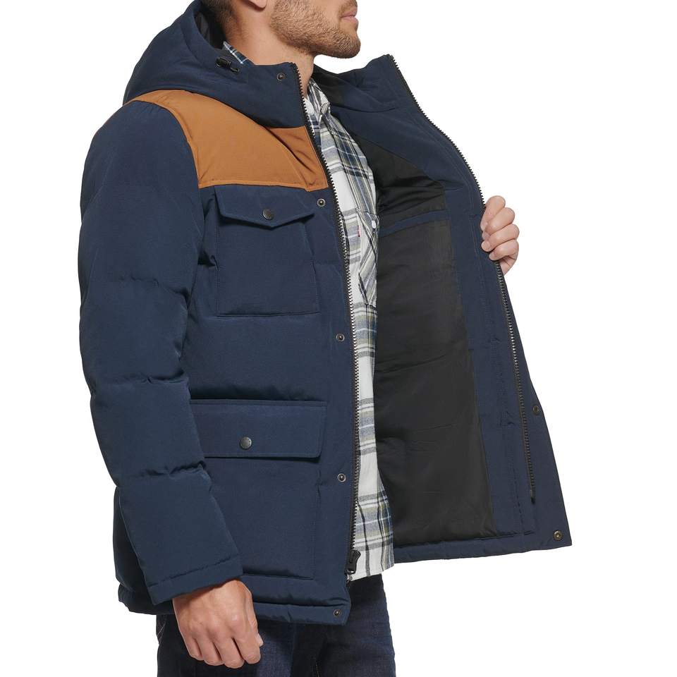 Veste matelassée pour homme à capuche doublée de sherpa, résistante à l'eau, coupe-vent, isolée, veste chaude d'hiver, manteau gonflé