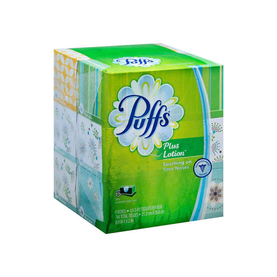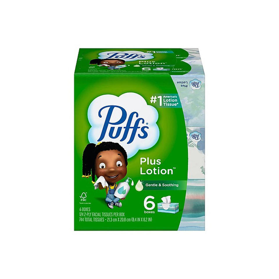 Mouchoirs en papier pour le visage Puffs Plus Lotion, Cube, 4 boîtes (56 pièces chacune)